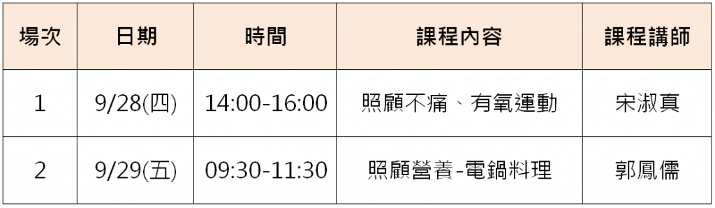 【課程快報】9/28、9/29辦理家庭照顧者支持活動,限20位名額唷!報名專線04-26571300