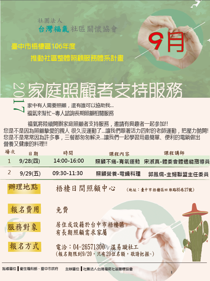 2017-09-14 10:05:35【2017家庭照顧者支持服務活動開跑囉~歡迎來電報名~🎉】